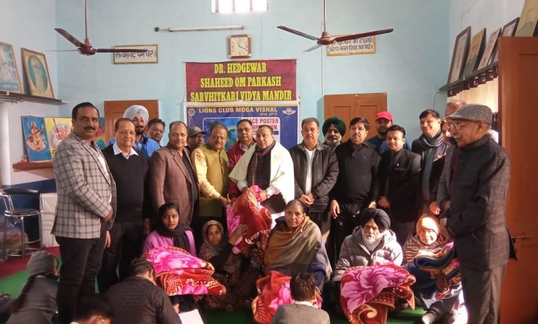 मोगा 24 द्संबर ( चरणजीत सिंह ) LIONS CLUB MOGA VISHAL आज दिन 24/12/21 को लयन क्लब मोगा विशाल ने लाइन क्लब की हिदायतों के अनुसार Peace Poster compitition स्थानीय स्कुल D.R Headewar शिक्षा मन्दिर के विधार्थियों के बीच प्रतियोगता करवा कर मनाया इसमें सभी विद्यार्थियों ने world Peacer Pictures बनाई और world Peace पर सन्देश लिखे ! इस प्रति योगता में बच्चों का उत्साह देखने योग्य था । इस प्रतियोगता में कुल 65 बच्चों ने भाग लिया जिन्होंने world Peace पर बहुत सुन्दर Painting बनाई और सुन्दर -2 सन्देश लिखे इस प्रतियोयला के मुख्य महिमान Vinod Bansal Chairman Improvement Trust मोगा थे । जिन्हो ने अपने सन्देश में बच्चों को शांति की शपथ दिलाई और बताया कि विश्व में वहीं देंश तरक्की कर रहे हैं , जो कि शांति प्रिय है । इस प्रतियोगता में स्कूल की मैनेजमेंट और स्टाफ का पूरा पूरा सहयोग रहा ओर उन्होंने बच्चों को तैयारी करवाने में कोई कमी नहीं छोड़ी ? इस मौके पर श्री विनोद बांसल , श्री रविन्दर गोयल , श्री दविन्द्र पाल , डा० महाजन , डा ० केवल कृष्ण बांसल , दीपक जिंदल , प्रेम दीप बांसल विशाल जिन्दल , करन नरूला सुमित चावला डा ० रमेश कांसल, राजन गर्ग , सुरिन्दर अग्रवाल दीपक तायल , अनिल गोयल राकेश जैसवाल , कुशील बांसल , आदि उपस्थित थे ।इस समय स्कूल स्टाफ के इलवा स्कूली बचो मे भी काफी उत्साह देखा गया बाद मे चीफ़ गेस्ट ने जरूरतमन्द लोगो को कंबल भी बांटे । आप को बता दे के लाइंस क्लब मोगा विशाल की तरफ से हर बार एक से बड़ कर एक नेक कम करवाया जा रहा है । मोगा से चरणजीत सिंह की रिपोर्ट