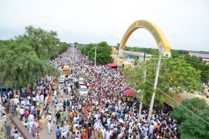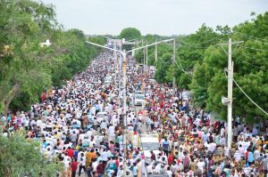 सिरसा 23 सितंबर ( सुनील वर्मा ) डेरा सच्चा सौदा में शुक्रवार को 32वां महापरोपकार दिवस धूमधाम और हर्षोल्लास के साथ मनाया गया। इस अवसर पर शाह सतनाम जी धाम में पावन भंडारे की नामचर्चा का आयोजन किया गया। बारिश के बावजूद श्रद्धालुओं के भारी उत्साह के सामने कई एकड़ में बना डेरा सच्चा सौदा का विशाल पंडाल छोटा पड़ गया। नामचर्चा की शुरूआत से पहले ही पूरा पंडाल साध-संगत से खचाखच भर गया था। इसके साथ ही सड़कों पर दूर-दूर तक साध-संगत की कतारें ही नजर आ रही थीं। इस अवसर पर पूज्य गुरू जी ने साध-संगत को 12वी चिट्ठी भेजी, जिसे साध-संगत के बीच पढ़कर सुनाया गया। इस अवसर पर मानवता भलाई के 142 कार्यों को गति देते हुए पूज्य गुरू संत डॉ. गुरमीत राम रहीम सिंह जी इन्सां व उनकी बेटी हनीप्रीत इन्सां की ओर से 132 जरूरतमंद परिवारों को एक-एक माह का राशन दिया गया। इसके अलावा शाह सतनाम जी ग्रीन एस वेल्फेयर फोर्स विंग की ओर से ‘साथी मुहिम’ के तहत 13 दिव्यांगों को ट्राइसाइकिलें दी गर्इं। वहीं एक विक्षिप्त को उसके परिवार को सौंपा गया।