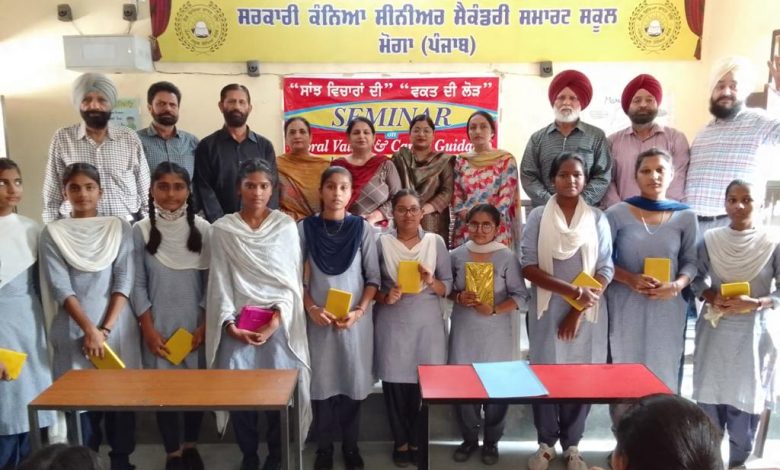 मोगा 18 जनवरी ( चरनजीत सिंह) सोशल वैल्फ़्यर क्लब मोगा की और से आज सरकारी सीनियर सैकंडरी गर्ल्ज़ स्कूल मोगा में नैतिक शिक्षा और कैरियर गाइडैन्स के सम्बन्ध में सैमिनार करवाया गया । जिसमें बोलते हुए क्लब के प्रधान ओ पी कुमार ने बच्चों को बताया कि हमें घर और समाज में कैसे सभी के साथ नम्रता से पेश आना चाहिए । एक दूसरे की इज्जत और सत्कार करने का सदभाव हमारे मन में होना चाहिए । रिश्तों में जो दरारें पड़ रही हैं उनको पड़ने से कैसे रोका जाना चाहिए । हमें सब के दर्द को समझने का अहसास होना ज़रूरी है । अध्यापकों से भी निवेदन किया गया कि बच्चों की भावनाओं के प्रति जागरुक रहें । उनको भी बच्चों का ध्यान रखना चाहिए । प्यारा सिंह चाहल ने वातावरण की शुद्धिता के लिए ग्रीन ग्लोबल बनाने में सहाई होने को कहा । सूरजीत सिंह ने बच्चों को वक़्त की क़ीमत समझने और झलमन दास ने अनुशासन में रहने के लिए प्रेरित किया ।रजिंदर कुमार ने बच्चों को फ़ास्ट फ़ूड को तिलांजलि देने और घरों में बने खाने को ही शुद्ध और सही बताया । प्रो: बलविंदर सिंह ने बच्चों को पोलिटिकल डिप्लोमा कोर्सेज़ के बारे में खुल कर जानकारी दी । उन्होंने बताया कि मोगा शहर में इस वक़्त लड़कों के लिए अलग और लड़कियों के लिए अलग-2 सरकारी आई टी आई हैं जहाँ वोकेशनल कोर्सेज़ कराए जाते हे । सरकारी बहु तकनीकी कालेज जी टी बी गढ़ रोड़े में हे , यहाँ पर ही पंजाब इंस्टीट्यूट आफ़ टेक्नॉलजी भी हे जहाँ से बी टैक , एम टैक बी सी ए , एम सी ए आदि डिग्री कोर्स भी यहाँ करवाए जाते हे जहाँ बहुत ही कम पैसे खर्च करके बच्चे शिक्षा ले कर अच्छे मुक़ाम हासिल कर सकते हे ।इस अवसर पर “भारत को जानो” प्रतियोगिता का आयोजन भी किया गया , सही उत्तर देने वाले बच्चों को क्लब की और से प्रोत्साहित भी किया गया । कार्यकारी प्रिन्सिपल भूपिन्दर कौर जी ने क्लब का उनके इस परोपकारी कार्य के लिए धन्यवाद किया और कहा कि संस्था वाक़या ही प्रशंसा की पात्र है क्यों जो आजकल के भाग दौड के जमाने में लोगों के पास अपनों के लिए ही समय नहीं है और यह समाज के लिए कितनी तनदेही से जुटे हुए है । इस अवसर पर स्टाफ़ गुरप्रीत शर्मा मैडम अमरप्रीत कौर , रमनदीप कौर हाज़िर हुए ।