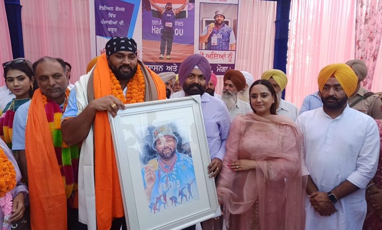 ਜ਼ਿਲ੍ਹਾ ਪ੍ਰਸ਼ਾਸਨ ਵੱਲੋਂ ਏਸ਼ੀਆਈ ਖੇਡਾਂ ਦੇ ਚੈਂਪੀਅਨ ਤਜਿੰਦਰਪਾਲ ਤੂਰ ਦਾ ਮੋਗਾ ਪਹੁੰਚਣ ‘ਤੇ ਸ਼ਾਨਦਾਰ ਸਵਾਗਤ