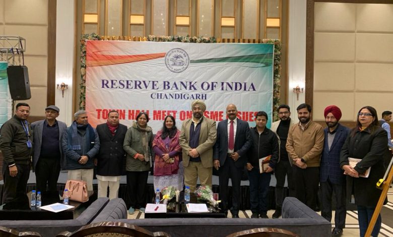 ਭਾਰਤੀ ਰਿਜ਼ਰਵ ਬੈਂਕ, ਚੰਡੀਗੜ੍ਹ ਦੇ ਵਿੱਤੀ ਸਮਾਵੇਸ਼ ਅਤੇ ਵਿਕਾਸ ਵਿਭਾਗ (FDDI) ਨੇ ਐਮ ਐਸ ਐਮ ਈ ਨਾਲ ਸਬੰਧਤ ਯੋਜਨਾਵਾਂ ਬਾਰੇ ਜਾਗਰੂਕਤਾ ਫੈਲਾਉਣ ਲਈ ਮੋਗਾ ਦੇ ਉਦਮੀਆਂ ਲਈ ਟਾਊਨ ਹਾਲ ਮੀਟਿੰਗ ਦਾ ਆਯੋਜਨ ਕੀਤਾ। ਮੀਟਿੰਗ ਦੀ ਪ੍ਰਧਾਨਗੀ ਸ੍ਰੀਮਤੀ ਸਵਿਤਾ ਕੇ. ਵਰਮਾ, ਡਿਪਟੀ ਜਨਰਲ ਮੈਨੇਜਰ, ਭਾਰਤੀ ਰਿਜ਼ਰਵ ਬੈਂਕ, ਚੰਡੀਗੜ੍ਹ ਨੇ ਕੀਤੀ। ਮੀਟਿੰਗ ਵਿੱਚ ਸ਼੍ਰੀ ਪੁਸਕਰ ਕੁਮਾਰ ਤਰਾਈ, ਜਨਰਲ ਮੈਨੇਜਰ, ਪੰਜਾਬ ਨੈਸ਼ਨਲ ਬੈਂਕ; ਸ਼੍ਰੀ ਸੁਖਮਿੰਦਰ ਸਿੰਘ ਰੇਖੀ, ਜਨਰਲ ਮੈਨੇਜਰ, ਜ਼ਿਲ੍ਹਾ ਉਦਯੋਗ ਕੇਂਦਰ; ਸ਼੍ਰੀ ਕੇ. ਵੀ.ਗੋਪੀ, ਡਿਪਟੀ ਜਨਰਲ ਮੈਨੇਜਰ, ਸਿਦਬੀ ਅਤੇ ਵੱਖ-ਵੱਖ ਬੈਂਕਾਂ ਦੇ ਅਧਿਕਾਰੀ ਹਾਜ਼ਰ ਸਨ। ਮੀਟਿੰਗ ਵਿੱਚ ਮੋਗਾ ਦੀਆਂ ਵੱਖ-ਵੱਖ ਉਦਯੋਗ ਸੰਘਾਂ ਦੇ ਨੁਮਾਇੰਦਿਆਂ ਅਤੇ ਵੱਖ-ਵੱਖ ਉਦਯੋਗਾਂ ਜਿਵੇਂ ਕਿ ਫੂਡ ਪ੍ਰੋਸੈਸਿੰਗ ਯੂਨਿਟ, ਪੰਜਾਬੀ ਜੁੱਤੀ ਕਲੱਸਟਰ, ਟੈਕਸਟਾਈਲ ਉਦਯੋਗ, ਚਮੜਾ ਅਤੇ ਚਮੜਾ ਨਾਲ ਸਬੰਧਤ ਉਦਯੋਗ ਅਤੇ ਕਪਾਹ ਉਦਯੋਗ ਦੇ ਐੱਮਐੱਸਐੱਮਈਜ਼ ਦੇ ਨੁਮਾਇੰਦਿਆਂ ਨੇ ਭਾਗ ਲਿਆ।