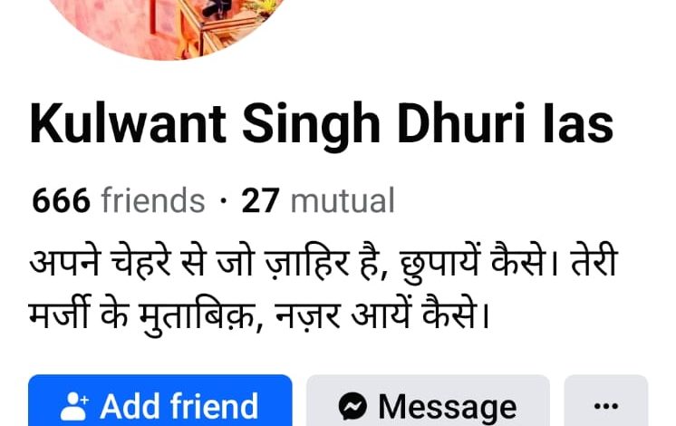 ਸ਼ਰਾਰਤੀ ਅਨਸਰਾਂ ਨੇ ਡਿਪਟੀ ਕਮਿਸ਼ਨਰ ਮੋਗਾ ਕੁਲਵੰਤ ਸਿੰਘ ਦੀ ਫੇਕ ਫੇਸਬੁੱਕ ਆਈ ਡੀ ਬਣਾਈ