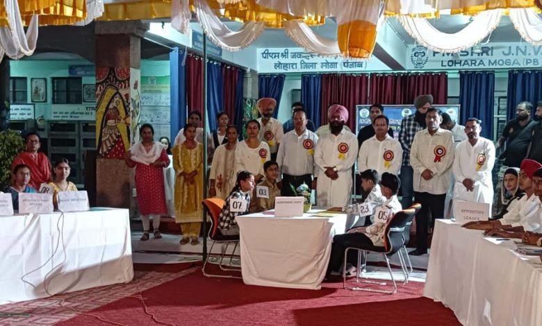 ਨਿਹਾਲ ਸਿੰਘ ਵਾਲਾ 19 ਸਤੰਬਰ(Charanjit Singh):-ਜਵਾਹਰ ਨਵੋਦਿਆ ਵਿਦਿਆਲਿਆ ਲੋਹਾਰਾ ਮੋਗਾ ਵਿੱਚ ਅੱਜ ਬਾਲ ਸੰਸਦ ਪ੍ਰਤਿਯੋਗਿਤਾ ਦਾ ਆਯੋਜਨ ਕੀਤਾ ਗਿਆ। ਇਸ ਪ੍ਰਤਿਯੋਗਿਤਾ ਵਿੱਚ ਵਿਦਿਆਰਥੀਆਂ ਨੇ ਵਧ ਚੜ੍ਹ ਕੇ ਹਿੱਸਾ ਲਿਆ। 53 ਹੋਣਹਾਰ ਵਿਦਿਆਰਥੀਆਂ ਦਾ ਪਾਰਲੀਮੈਂਟ ਮੁਕਾਬਲਾ ਕਰਵਾਇਆ ਗਿਆ। ਇਸ ਪ੍ਰੋਗਰਾਮ ਵਿੱਚ ਵਿਧਾਇਕ ਨਿਹਾਲ ਸਿੰਘ ਵਾਲਾ ਸ੍ਰ. ਮਨਜੀਤ ਸਿੰਘ ਬਿਲਾਸਪੁਰ ਨੇ ਵਿਸ਼ੇਸ਼ ਸ਼ਿਰਕਤ ਕੀਤੀ। ਜਵਾਹਰ ਨਵੋਦਿਆ ਵਿਦਿਆਲਿਆ ਫ਼ਿਰੋਜ਼ਪੁਰ ਦੀ ਪ੍ਰਿੰਸੀਪਲ ਸ਼੍ਰੀਮਤੀ ਸਵਰਨਜੀਤ ਕੌਰ ਅਤੇ ਸਥਾਨਕ ਸੁਪਰੀਮ ਕਾਨਵੇਂਟ ਸਕੂਲ ਬਿਲਾਸਪੁਰ ਦੇ ਪ੍ਰਿੰਸੀਪਲ ਸੰਜੀਵ ਕੁਮਾਰ ਵੀ ਇਸ ਪ੍ਰੋਗਰਾਮ ਵਿੱਚ ਮੌਜੂਦ ਸਨ।