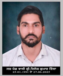 ਪ੍ਰੇਮੀ ਸੇਵਕ ਦਿਨੇਸ਼ ਕੁਮਾਰ ਇੰਸਾਂ ਦੀ ਅੰਤਿਮ ਅਰਦਾਸ ਵਜੋਂ ਨਾਮ ਚਰਚਾ ਧਰਮਕੋਟ ਵਿਖੇ ਐਤਵਾਰ ਨੂੰ ਹੋਵੇਗੀ