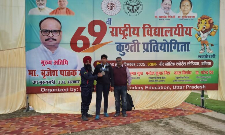 ਮੋਗਾ 12 ਦਸੰਬਰ ( ਚਰਨਜੀਤ ਸਿੰਘ) ਸਕੂਲ ਦੇ ਚੈਅਰਮੈਨ ਸ.ਗੁਰਜੀਤ ਸਿੰਘ ਗਾਹਲਾ ਜੀ ਨੇ ਜਾਣਕਾਰੀ ਦਿੰਦੇ ਆਖਿਆ ਕਿ ਸਕੂਲ ਦੀ ਵਿਦਿਆਰਥਣ ਰਾਜਵੀਰ ਕੌਰ ਪੁੱਤਰੀ ਸ.ਜੋਗਿੰਦਰ ਸਿੰਘ ਨੇ ਬੀਤੇ ਕੱਲ ਗੋਰਖਪੁਰ (ਉੱਤਰ ਪ੍ਰਦੇਸ਼) ਵਿਖੇ ਹੋਈਆਂ 69ਵੀਂ ਨੈਸ਼ਨਲ ਪੱਧਰ ਦੀਆਂ ਖੇਡਾਂ ਕੁਸ਼ਤੀ ਅੰਡਰ 17 ਵਿੱਚ ਵਜਨ 73 ਕਿਲੋ ਵਿੱਚ ਮਹਾਰਾਸ਼ਟਰ ਦੀ ਖਿਡਾਰਨ ਨੂੰ10:0 ਪੁਆਇੰਟ ਦੇ ਨਾਲ ਹਾਰ ਦੇ ਕੇ ਪੂਰੇ ਭਾਰਤ ਪਹਿਲਾਂ ਸਥਾਨ ਹਾਸਿਲ ਕਰ ਕੇ ਗੋਲਡ ਮੈਡਲ ਜਿੱਤਿਆ ਹੈ ਨਾਲ ਆਖਿਆ ਕਿ ਕੁਸ਼ਤੀ ਕੋਚ ਸ੍ਰੀ ਨੀਰਜ ਕੁਮਾਰ ਗਿੱਦੜਬਾਹਾ ਜੋ ਕਿ ਪਿਛਲੇ ਪੰਜ ਸਾਲ ਤੋਂ ਖਿਡਾਰਨ ਦੀ ਸਰਕਾਰੀ ਸੀਨੀਅਰ ਸੈਕੰਡਰੀ ਸਕੂਲ ਮੁੰਡੇ ਗਿੱਦੜਬਾਹਾ ਕੁਸ਼ਤੀ ਸੈਂਟਰ ਵਿੱਚ ਮਿਹਨਤ ਕਰਵਾ ਰਹੇ ਸਨ ਜਿਸ ਦੇ ਸਦਕਾ ਇਹ ਜਿੱਤ ਹਾਸਿਲ ਹੋਈ ਹੈ I ਸਕੂਲ ਅਤੇ ਪੰਜਾਬ ਰਾਜ ਲਈ ਇਹ ਮਾਣ ਵਾਲੀ ਗੱਲ ਹੈI ਸਕੂਲ ਪ੍ਰਿੰਸੀਪਲ ਅਤੇ ਸਮੂਹ ਸਟਾਫ ਨੇ ਵਿਦਿਆਰਥਣ ਰਾਜਵੀਰ ਕੌਰ ਅਤੇ ਉਸਦੇ ਮਾਪਿਆ ਨੂੰ ਵਧਾਈ ਦਿੰਦਿਆ ਵਿਦਿਆਰਥਣ ਦੇ ਉਜਵਲ ਭਵਿੱਖ ਦੀ ਕਮਾਨਾ ਕੀਤੀ ਹੈ I