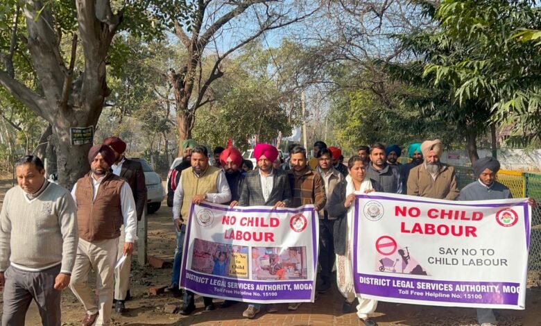 ਮੈਂਬਰ ਸਕੱਤਰ ਪੰਜਾਬ ਰਾਜ ਕਾਨੂੰਨੀ ਸੇਵਾਵਾਂ ਅਥਾਰਟੀ ਐੱਸ.ਏ.ਐੱਸ ਨਗਰ ਦੇ ਦਿਸ਼ਾ-ਨਿਰਦੇਸ਼ਾਂ ਅਨੁਸਾਰ ਚਾਈਲਡ ਲੇਬਰ ਦੇ ਵਿਰੁੱਧ ਪੂਰੇ ਪੰਜਾਬ ਵਿੱਚ 26 ਜਨਵਰੀ ਤੋਂ ਮਾਰਚ 2026 ਤੱਕ “ਪੈਨ-ਇੰਡੀਆ ਰੈਸੀਕਿਊ ਐਂਡ਼ ਰੀਹੈਬਲੀਟੇਸ਼ਨ ਕੰਪੇਨ ਫਾਰ ਇਰੈਡੀਕੇਸ਼ਨ ਆਫ ਚਾਈਲਡ ਐਂਡ ਐਡੋਲਸੈਂਟ ਲੇਬਰ” ਦੇ ਨਾਮ ਹੇਠ ਮੁਹਿੰਮ ਚਲਾਈ ਜਾ ਰਹੀ ਹੈ। ਇਸ ਮੁਹਿੰਮ ਤਹਿਤ ਮਿਸ ਨੀਲਮ ਅਰੋੜਾ ਜ਼ਿਲ੍ਹਾ ਤੇ ਸੈਸ਼ਨ ਜੱਜ-ਕਮ-ਚੇਅਰਪਰਸਨ, ਜ਼ਿਲ੍ਹਾ ਕਾਨੂੰਨੀ ਸੇਵਾਵਾਂ ਅਥਾਰਟੀ ਮੋਗਾ ਦੀ ਅਗਵਾਈ ਹੇਠ ਮਿਸ ਕਿਰਨ ਜਯੋਤੀ ਸੀ.ਜੇ.ਐੱਮ.-ਕਮ-ਸਕੱਤਰ ਜ਼ਿਲ੍ਹਾ ਕਾਨੂੰਨੀ ਸੇਵਾਵਾਂ ਅਥਾਰਟੀ ਮੋਗਾ ਵੱਲੋਂ ਲੇਬਰ ਵਿਭਾਗ, ਪੁਲਿਸ ਵਿਭਾਗ ਤੇ ਚਾਈਲਡ ਵੈੱਲਫੇਅਰ ਕਮੇਟੀ, ਬਾਲ ਮਜਦੂਰੀ ਸਬੰਧੀ ਬਣਾਈ ਗਈ ਟਾਸਕ ਫੋਰਸ ਦੇ ਮੈਂਬਰਾਂ ਦੇ ਸਹਿਯੋਗ ਨਾਲ ਨੇਚਰ ਪਾਰਕ ਮੋਗਾ ਤੋਂ ਲੈ ਕੇ ਰੇਲਵੇ ਸਟੇਸ਼ਨ ਮੋਗਾ ਤੱਕ ਚਾਈਲਡ ਲੇਬਰ ਦੇ ਖਿਲਾਫ ਜਾਗਰੂਕਤਾ ਰੈਲੀ ਕੱਢ ਕੇ ਮੁਹਿੰਮ ਦੀ ਸ਼ੁਰੂਆਤ ਕੀਤੀ ਗਈ। ਇਸ ਵਿੱਚ ਜਸਦੀਪ ਸਿੰਘ ਜ਼ਿਲ੍ਹਾ ਬਾਲ ਸੁਰੱਖਿਆ ਅਫ਼ਸਰ, ਰਜੇਸ਼ ਪੁਰੀ ਚੇਅਰਮੈਨ ਬਾਲ ਭਲਾਈ ਕਮੇਟੀ, ਰਾਜਬੀਰ ਸਿੰਘ ਲੇਬਰ ਇੰਸਪੈਕਟਰ, ਏਕਮਜੀਤ ਸਿੰਘ ਮੈਡੀਕਲ ਅਫਸਰ, ਹਰਜਿੰਦਰ ਸਿੰਘ ਏ.ਐਸ.ਆਈ., ਹਰਮੇਲ ਸਿੰਘ ਏ.ਐੱਸ.ਆਈ, ਗੁਰਮੁਖ ਸਿੰਘ, ਬਲਕਰਨ ਸਿੰਘ ਆਦਿ ਹਾਜਰ ਸਨ। ਪੈਨਲ ਵਕੀਲ ਅਤੇ ਪੈਰਾ ਲੀਗਲ ਵਲੰਟੀਅਰਾਂ ਤੋਂ ਇਲਾਵਾ ਬਾਲ ਮਜਦੂਰੀ ਖਾਤਮੇ ਸਬੰਧੀ ਬਣਾਈ ਗਈ ਟਾਸਕ ਫੋਰਸ ਦੇ ਮੈਂਬਰਾਂ ਵੱਲੋਂ ਭਾਗ ਲਿਆ ਗਿਆ।ਇਸ ਸਮੇਂ ਮਿਸ ਕਿਰਨ ਜਯੋਤੀ ਸੀ.ਜੇ.ਐੱਮ-ਕਮ-ਸਕੱਤਰ ਜ਼ਿਲ੍ਹਾ ਕਾਨੂੰਨੀ ਸੇਵਾਵਾਂ ਅਥਾਰਟੀ ਮੋਗਾ ਵੱਲੋਂ ਇੱਕ ਜਾਗਰੂਕਤਾ ਪ੍ਰੋਗਰਾਮ ਕੀਤਾ ਗਿਆ, ਜਿਸ ਦੇ ਤਹਿਤ ਉਨ੍ਹਾਂ ਨੇ ਦੱਸਿਆ ਕਿ ਇਸ ਮੁਹਿੰਮ ਦਾ ਮੁੱਖ ਮਕਸਦ ਚਾਈਲਡ ਲੇਬਰ ਨੂੰ ਰੋਕਣਾ ਅਤੇ ਬੱਚਿਆਂ ਦੇ ਉਜਵਲ ਭਵਿੱਖ ਲਈ ਉਨ੍ਹਾਂ ਨੂੰ ਸਹੀ ਸੇਧ ਦੇਣਾ ਹੈ। ਇਸ ਤੋਂ ਇਲਾਵਾ ਟਾਸਕ ਫੋਰਸ ਵੱਲੋਂ ਰੇਲਵੇ ਰੋਡ ਤੇ ਰੇਡ ਵੀ ਕੀਤੀ ਗਈ।